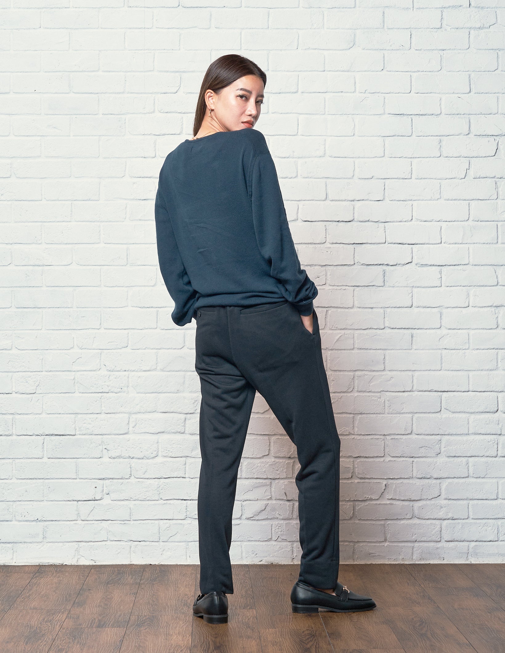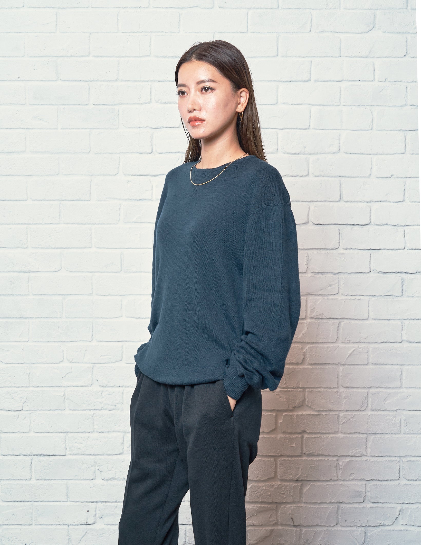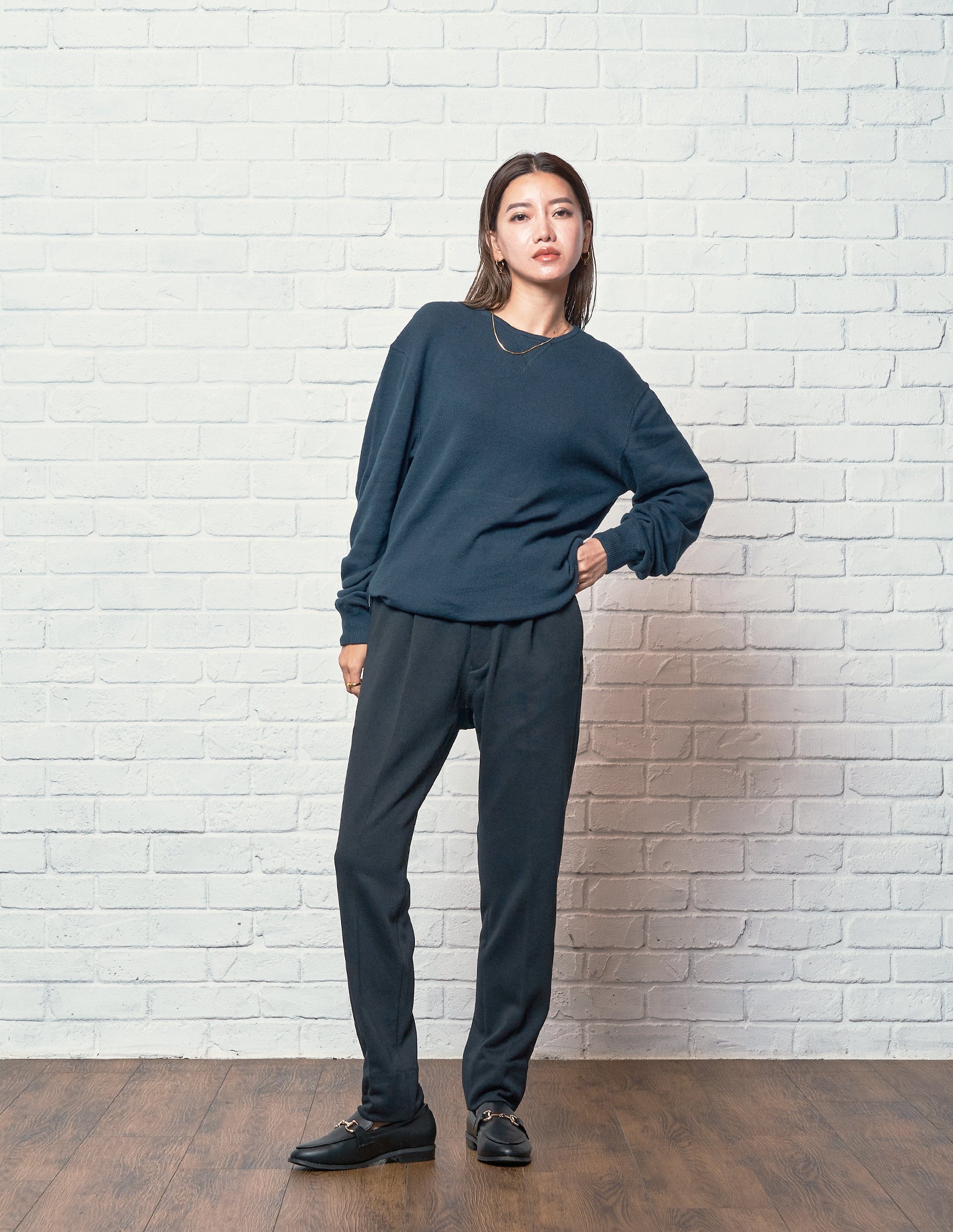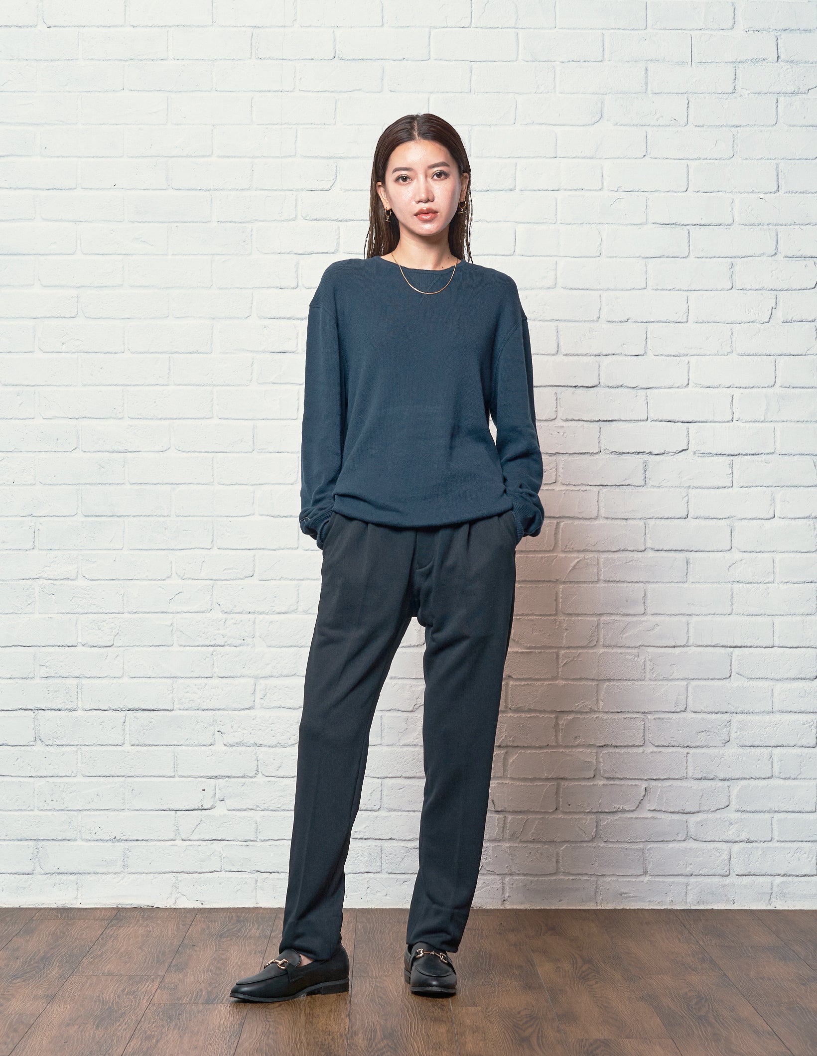 ジャケットの下に合わせてもすっきりと着こなせるシルエットです。