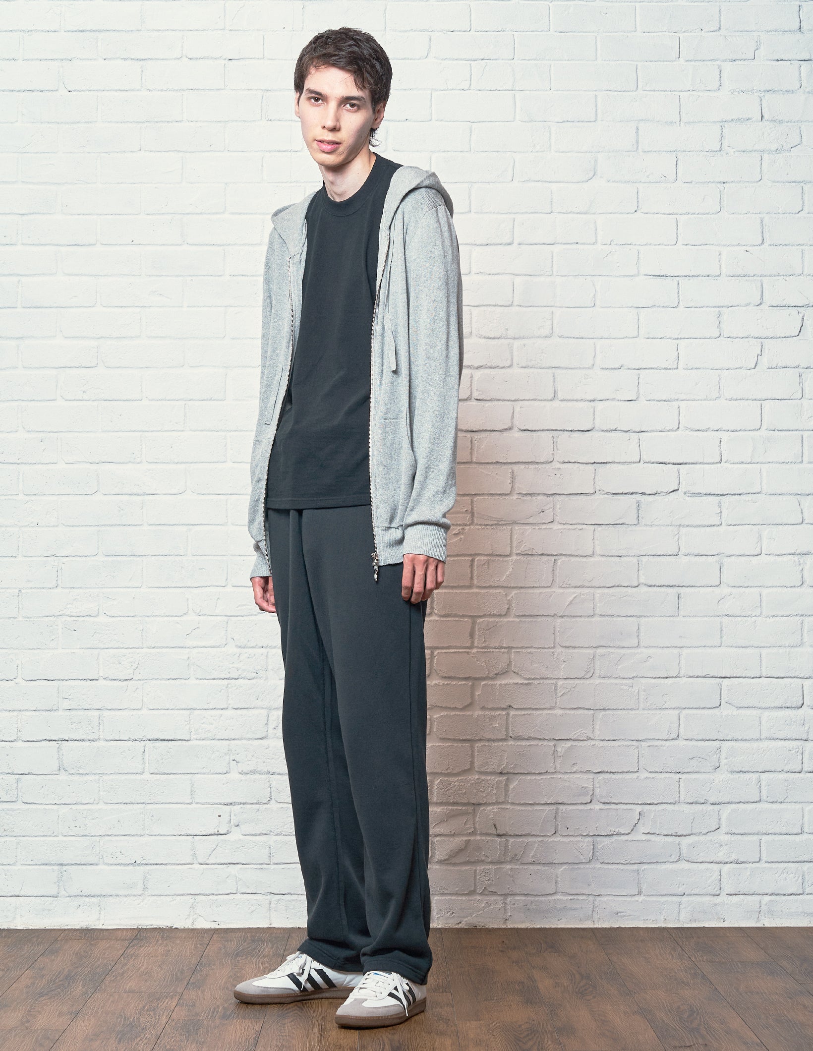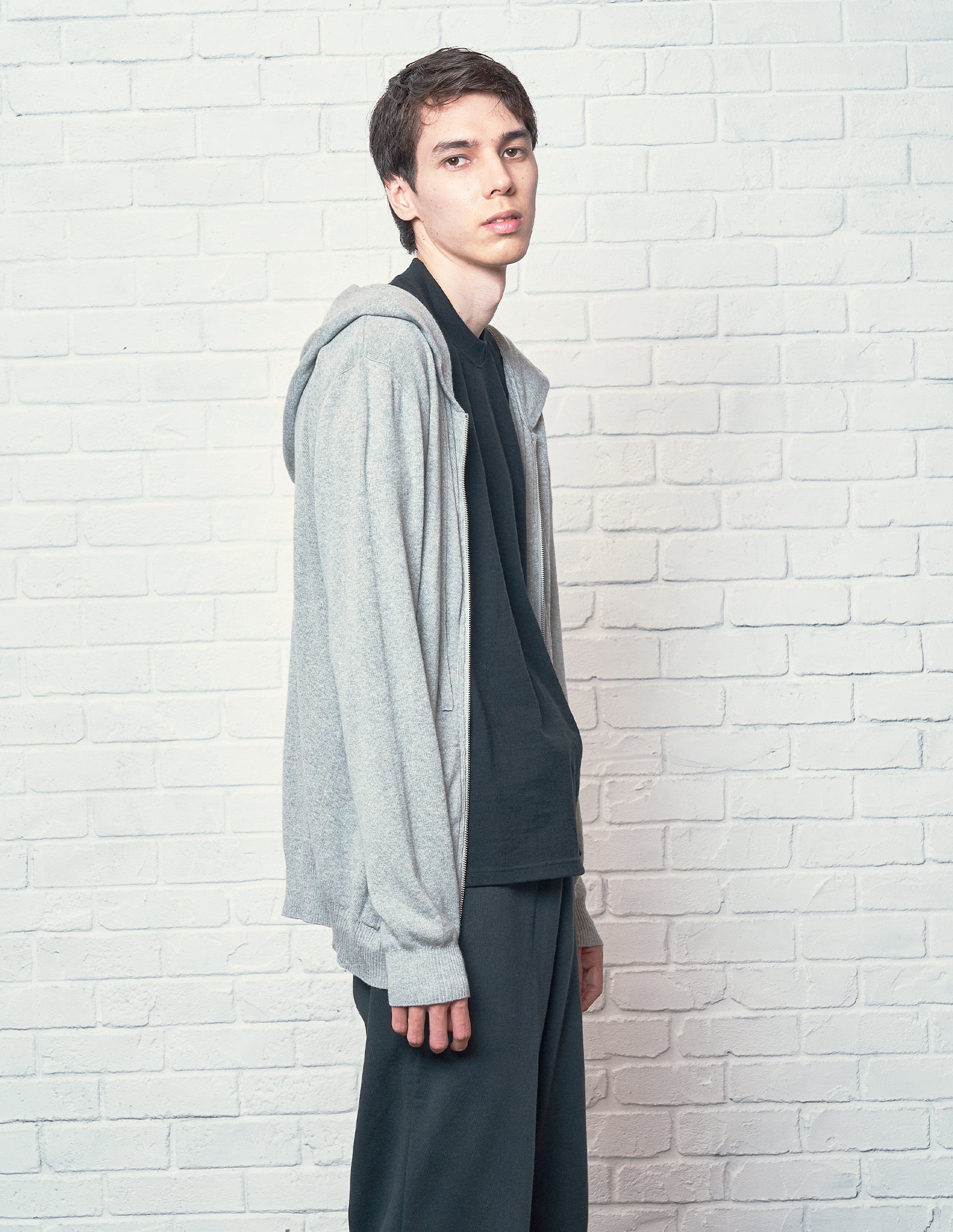 幅広いシーンで活躍する上質なニットパーカー。